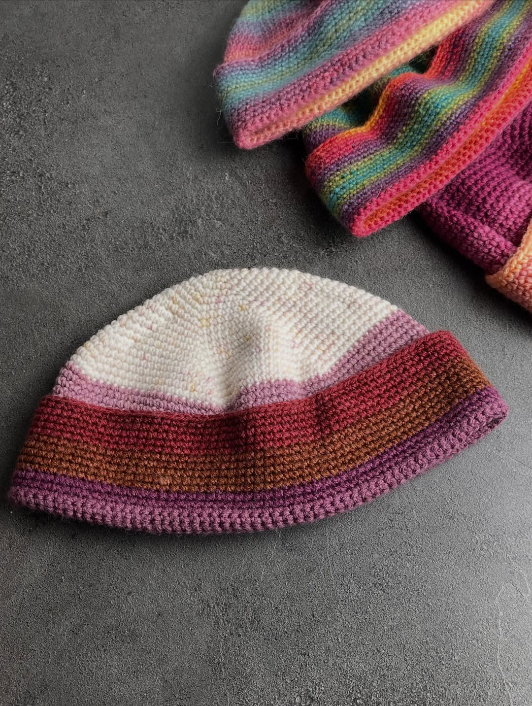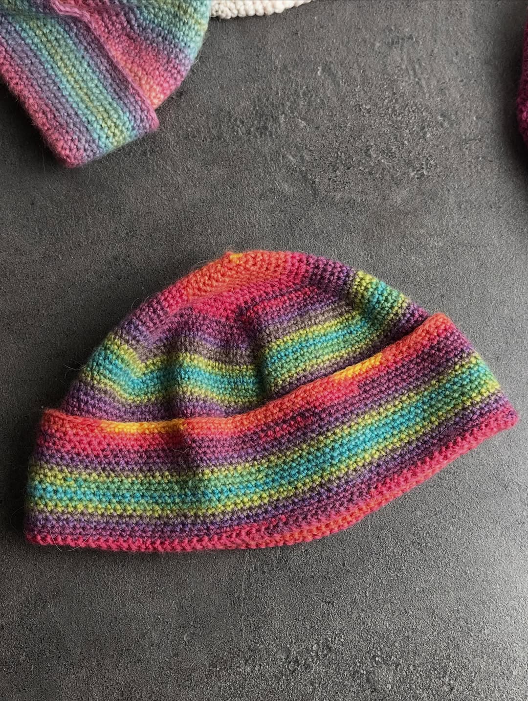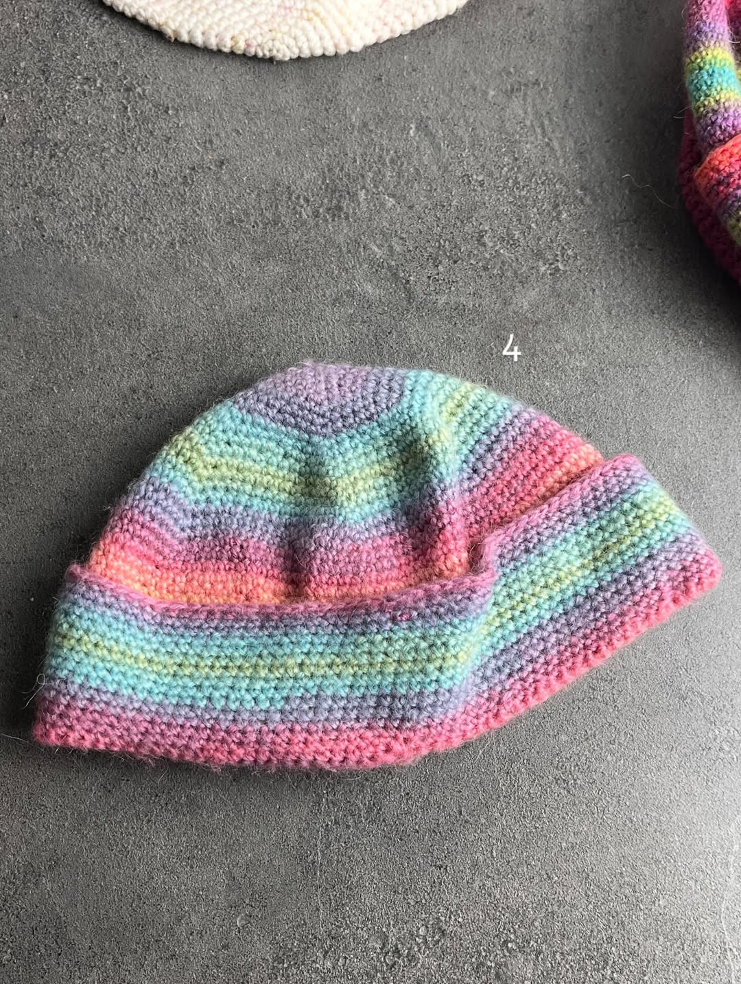 کلاه لئونی دست‌ بافت رنگی‌ رنگی