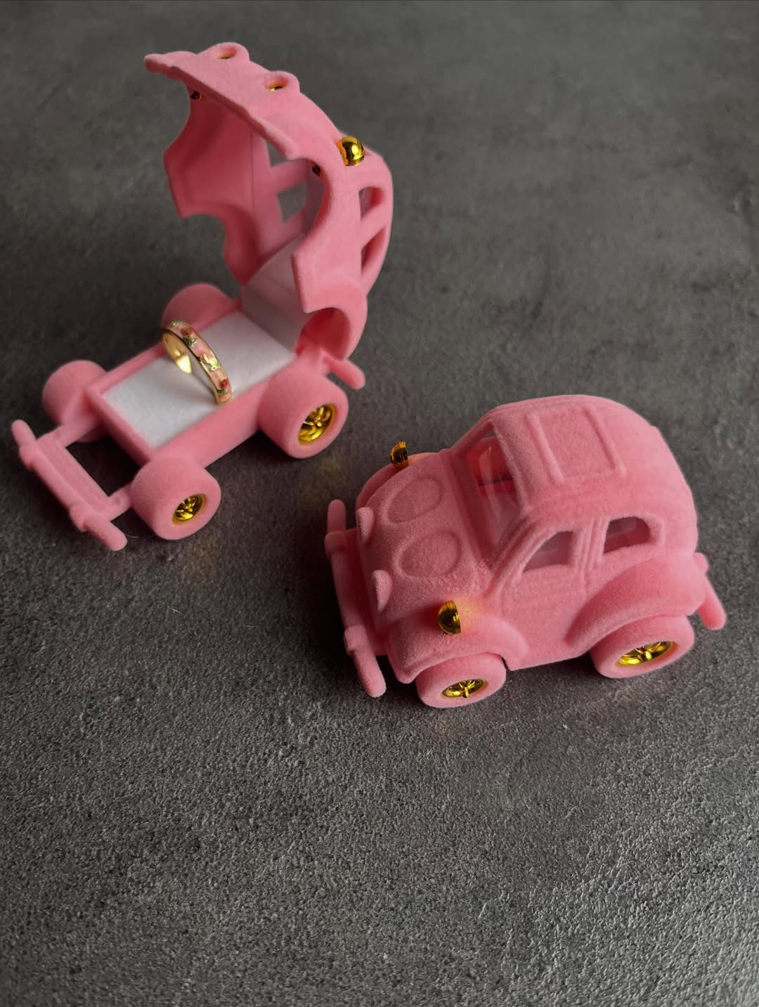 جعبه انگشتر طرح ماشین فولکس صورتی گوگولی